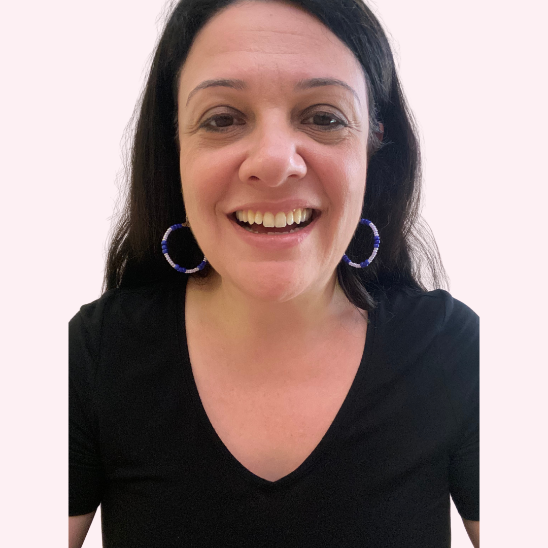 Playful lilac meets bold royal blue in Coastal Bloom—a striking combination inspired by summer wildflowers swaying beside the sea. These 1.5″ silver hoops blend soft and strong elements to create a fresh, confident look that’s both feminine and fearless.